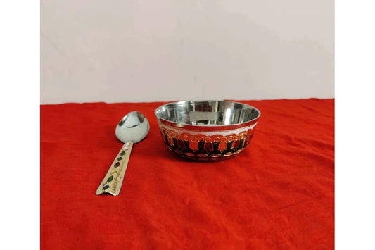 Meenakari Steel Cup Bowl Spoon Set