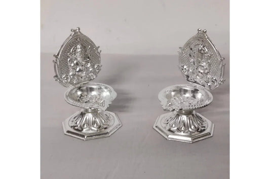 White Metal Ganesh Diya Pair