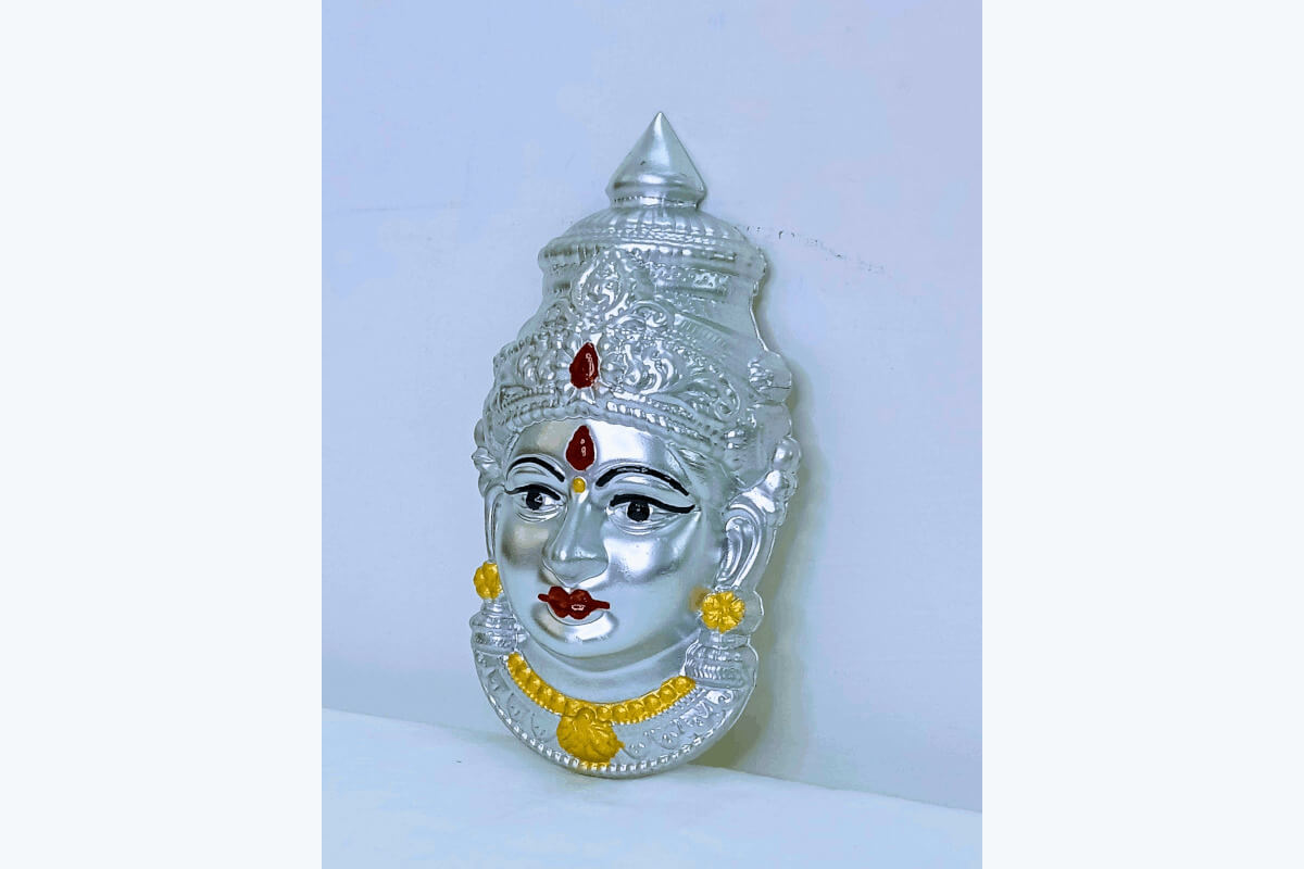 Varalakshmi pooja is coming and we are back with beautiful collections of Lakshmi Devi Face. Gowri Face German Silver 6" is one such item which satisfies all your needs. This ammavari face is in German Silver with enamel decorations. Explore Now and Add to Cart!