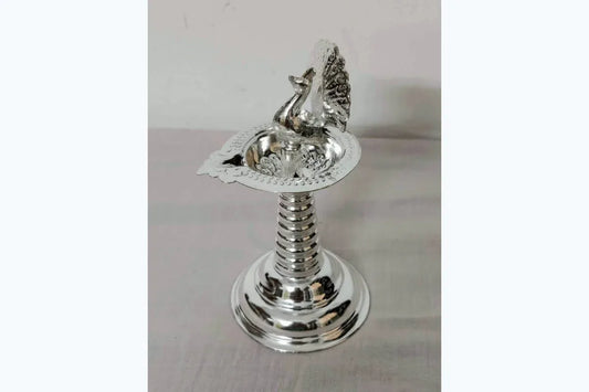 Sold outPeacock Silver Plated Diya Pair
