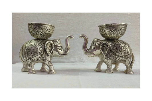 Metal Antique Elephant Bowl Pair