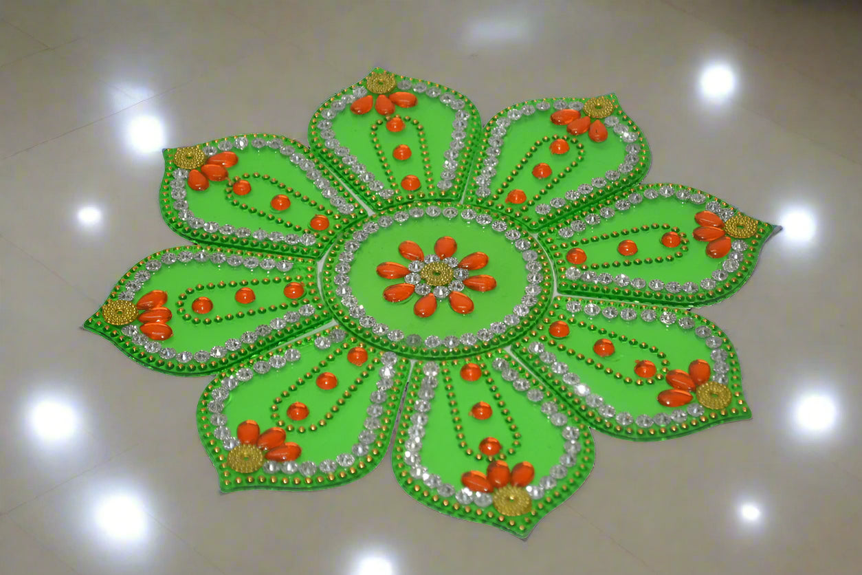 This Acrylic Big Kolam Rangoli is a stunning addition to your home decor. Made of high-quality acrylic material, it is durable and long-lasting. With its design and vibrant colors, it adds a touch of elegance to any space. Perfect for traditional and modern settings alike, this rangoli is a must-have for any art enthusiast.