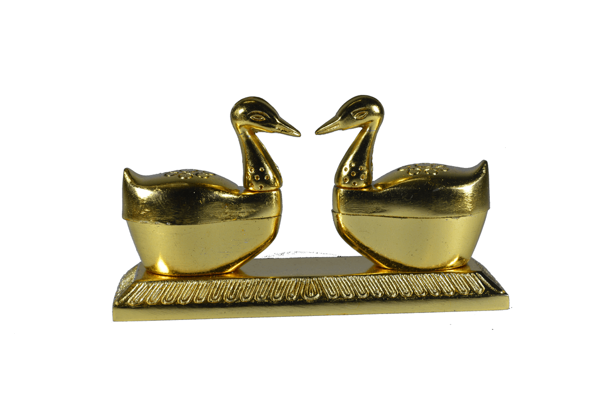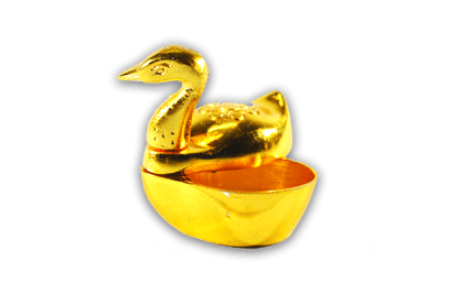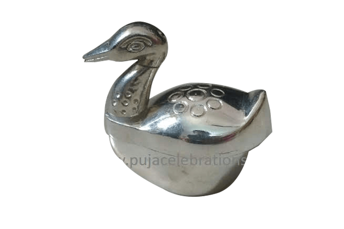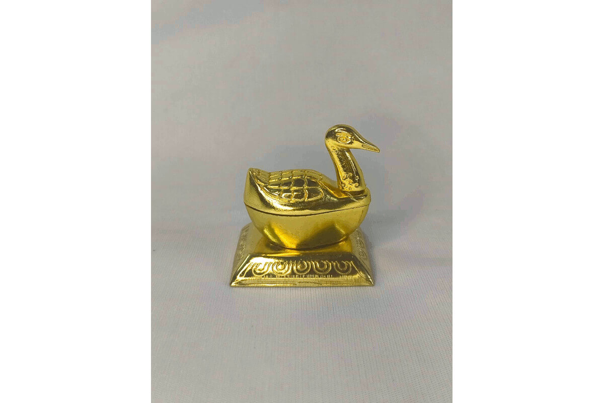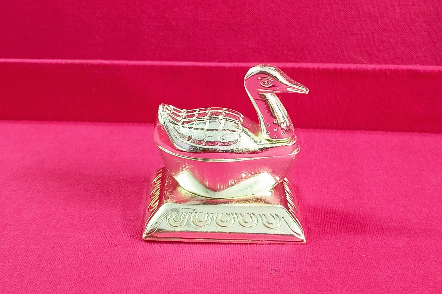 Kumkum gets easier with traditional and stylish kumkum box, Handcrafted kumkum boxes are excellent gift for return gifting. Enjoy festivals with prosperity in sheer style and elegance by bringing this beautiful kumkum box from Puja Celebrations. This beautiful Duck Kumkum Box is ideal return gifts for marriage, seemantham, housewarming, upanayanams and for other festivals too. This material is made out of Zinc metal with gold and silver polish. Explore now and add to your cart.