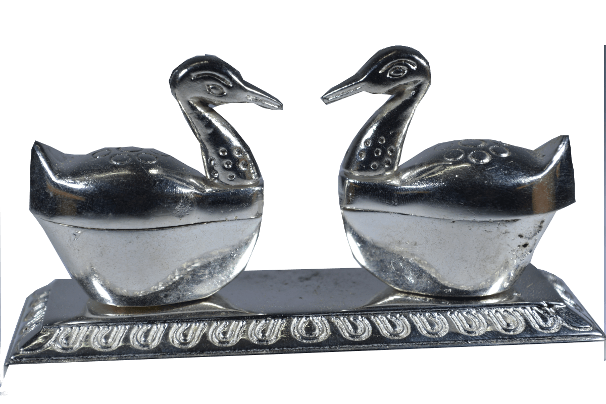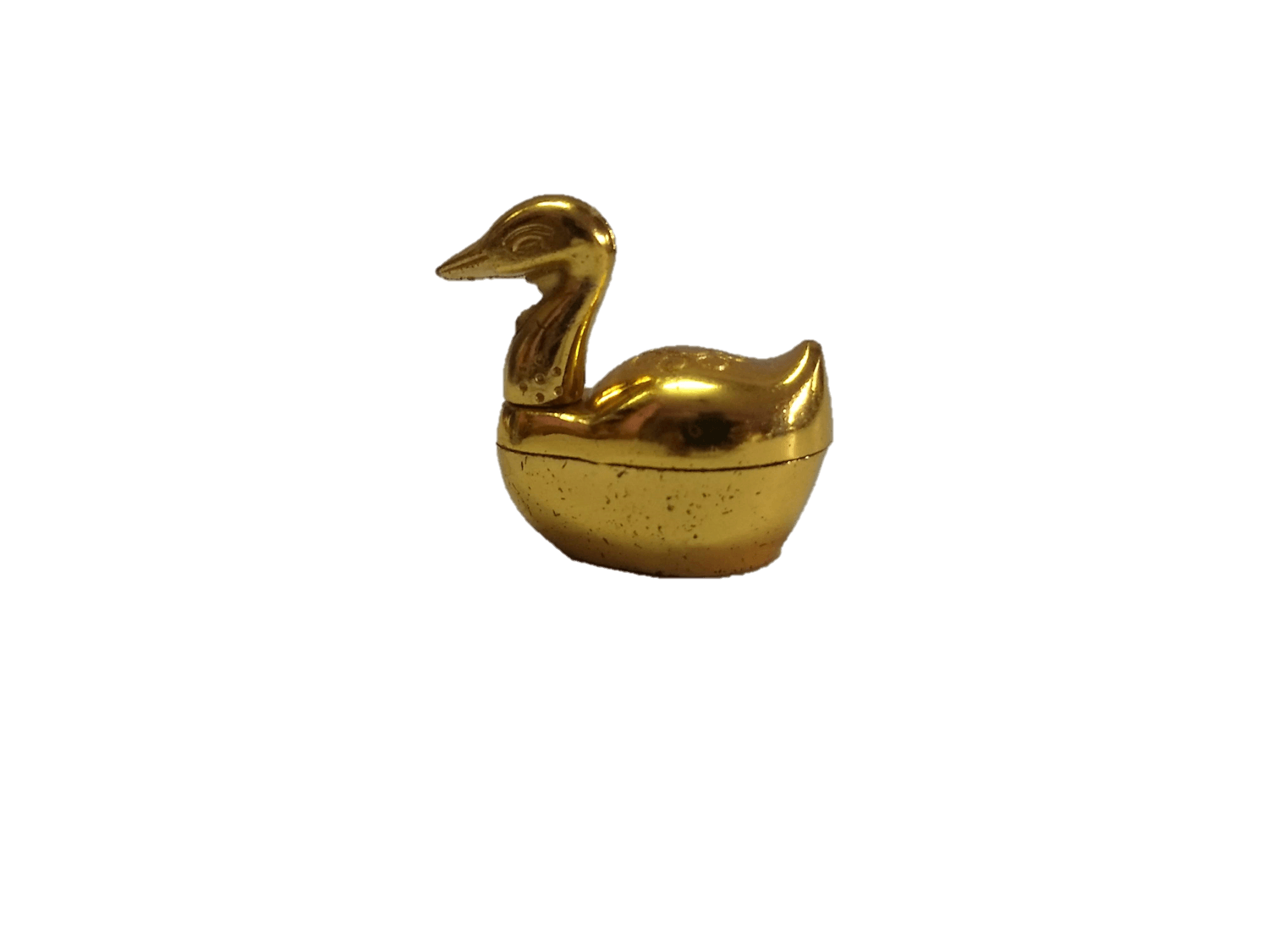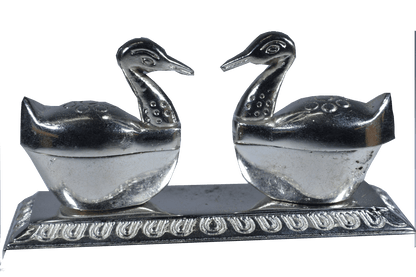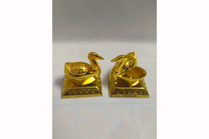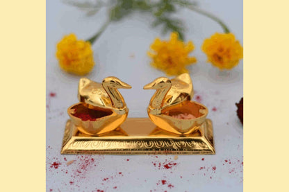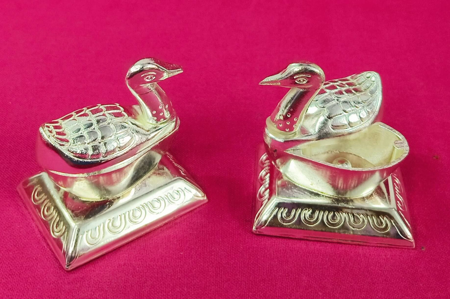 Kumkum gets easier with traditional and stylish kumkum box, Handcrafted kumkum boxes are excellent gift for return gifting. Enjoy festivals with prosperity in sheer style and elegance by bringing this beautiful kumkum box from Puja Celebrations. This beautiful Duck Kumkum Box is ideal return gifts for marriage, seemantham, housewarming, upanayanams and for other festivals too. This material is made out of Zinc metal with gold and silver polish. Explore now and add to your cart.