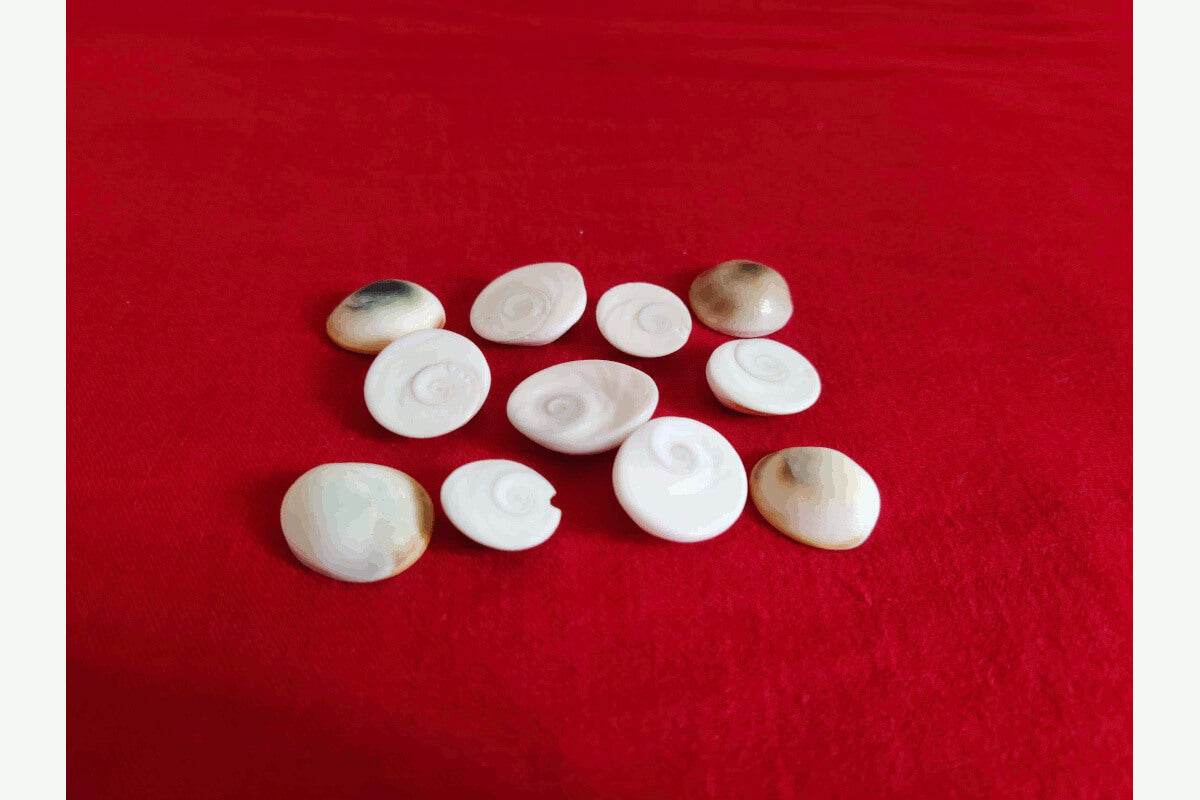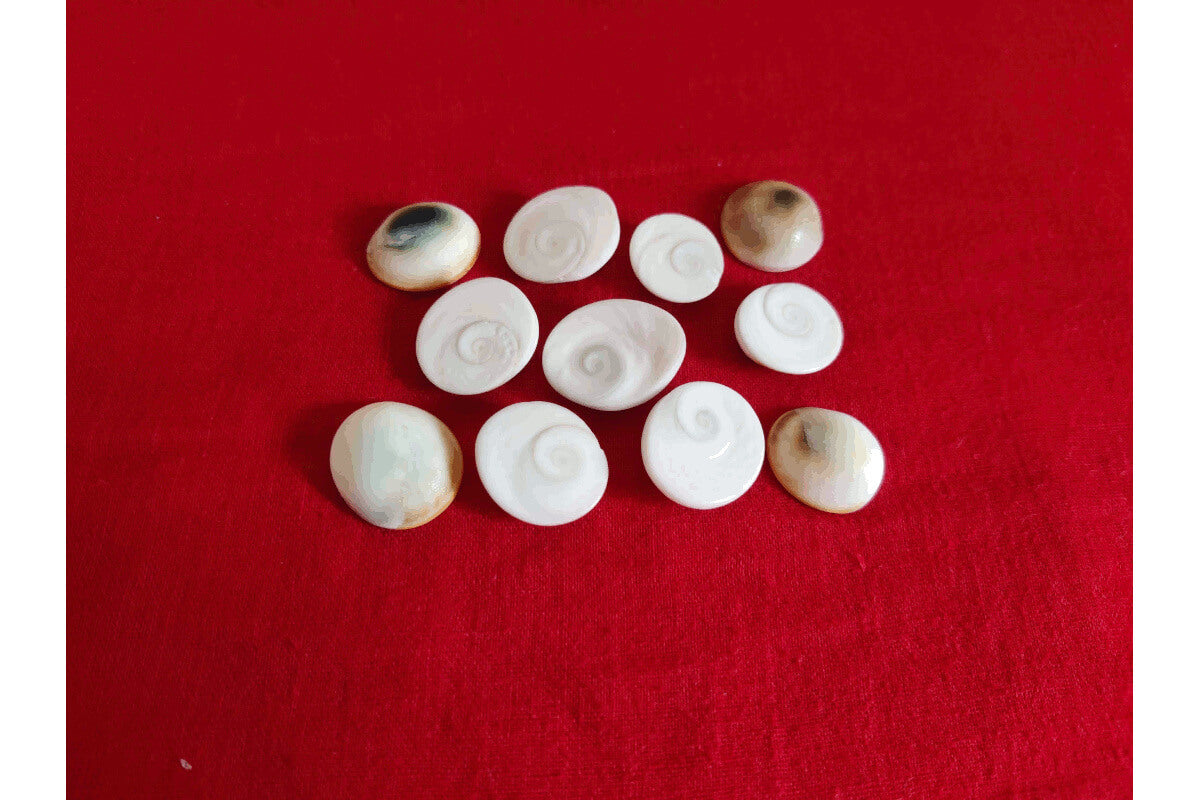 Set of 11nos. One side of the Gomti chakra is elevated like a shell while the other side is flat with circular design like whirl