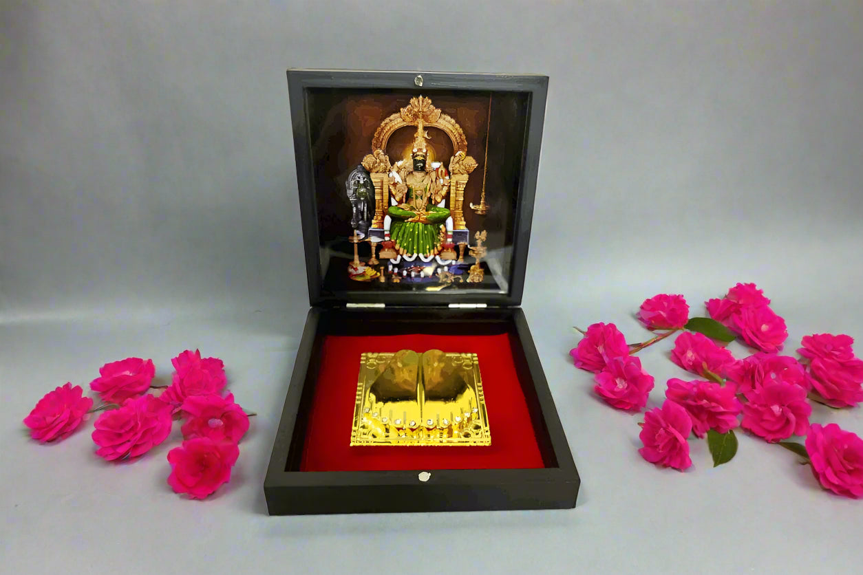 * Estimated delivery 5-20 days from order date based on stockStore and honor your devotion with the beautifully crafted Kamakshi Amman Charan Box. Keep your sacred items safe and organized in this intricately designed box, bringing spiritual blessings and a sense of peace to your daily life.