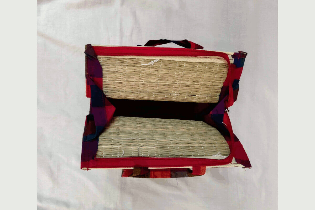 Shop this trendy and excellent River grass and Korai Dry Grass Bag from Puja Celebrations! One side zari border, rest cloth border with cloth handle. A beautiful griha pravesh return gifts. Save your time and money as we do return gifts online which is very comfort and easy for you to shop! Book Now!