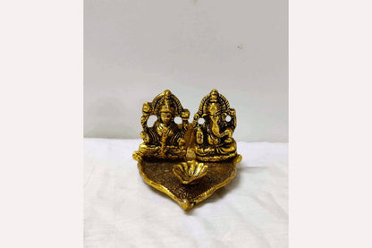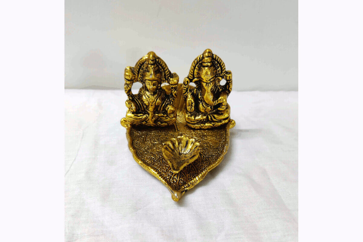 This Lakshmi Ganesh Patta Paan Base is a traditional Indian decorative piece which features intricate carvings of Lakshmi and Ganesh on a paan-shaped base. Made from high-quality materials, this base adds a touch of cultural elegance to any room. Perfect for puja rooms, altars, or as a unique home décor piece.