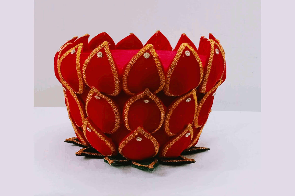 This Lotus Kamal Puja Asan is perfect for Varalakshmi puja or Lakshmi puja. Designed specifically for your Varalakshmi Puja or Lakshmi Puja. Elevate your spiritual journey with our Lotus Kamal Puja Asan - the perfect addition to your sacred space for your Varalakshmi puja. Its beautiful lotus design adds a touch of elegance to your worship area.