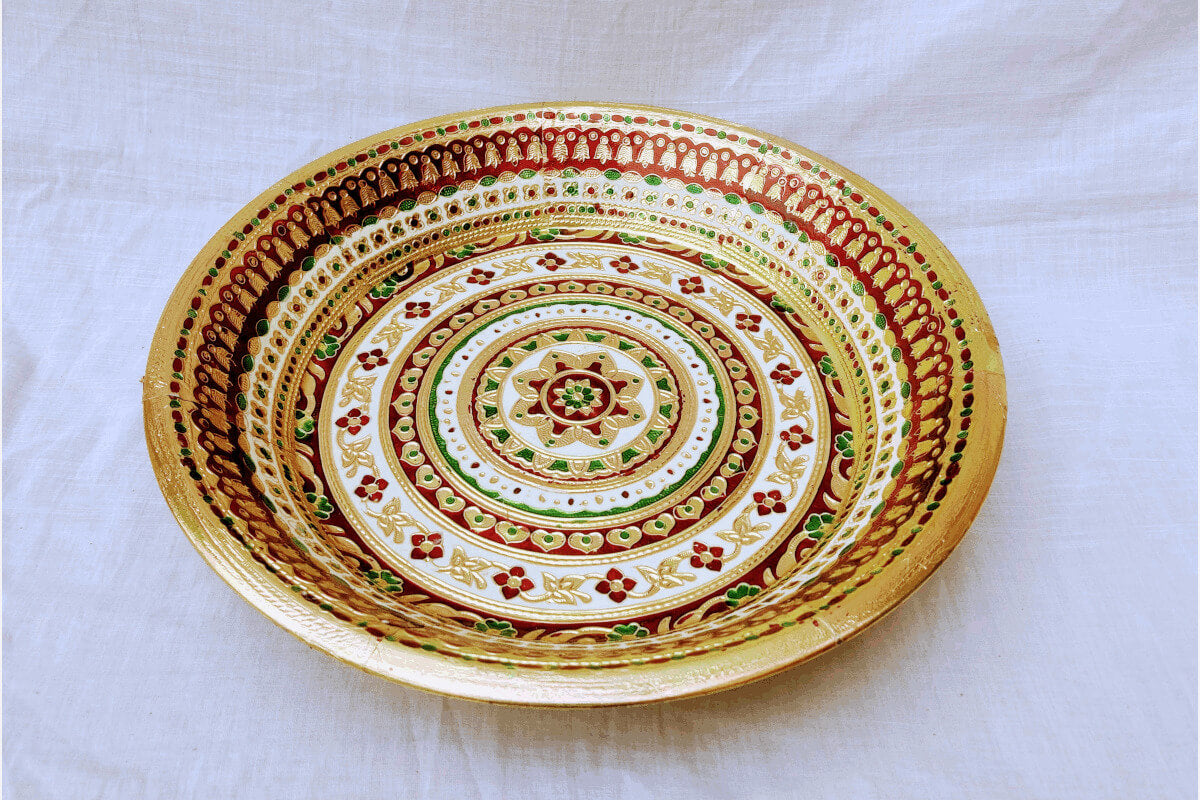 Meenakari Steel Tambulam Plate Parat can be a great return gift for Wedding, Upanayanam, Baby Shower , Birthday Return Gift, Diwali Gift, Utility Gits, Unique Gifting, Indian Gifts & also to display Seers & bakshanams at family events. Explore now.