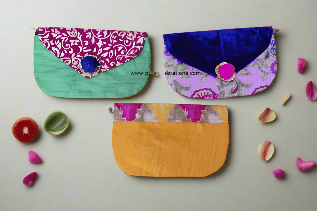 Get wide ranges of gift for ladies under 100 at Puja Celebrations! We help you make your guests happy with beautiful Silk Clutch Purse in various designs.