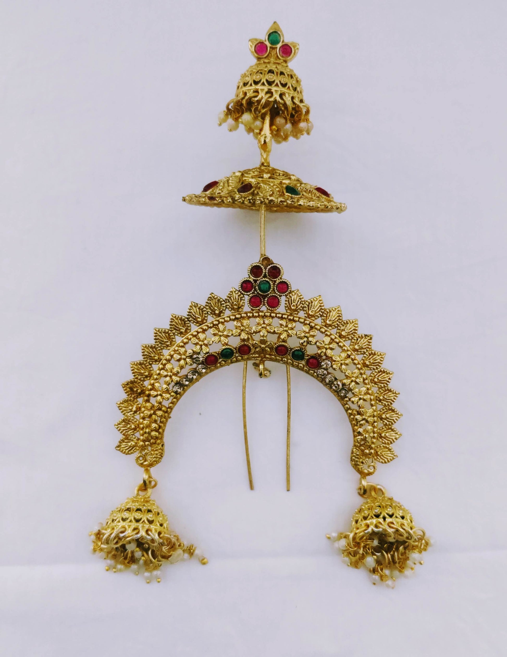 Traditional Hair Khopa Pin is a must-have addition to your puja accessories. This hair pin is designed to hold and adorn varalakshmi Devi hair in the traditional khopa style, providing a touch of elegance and authenticity to your look.