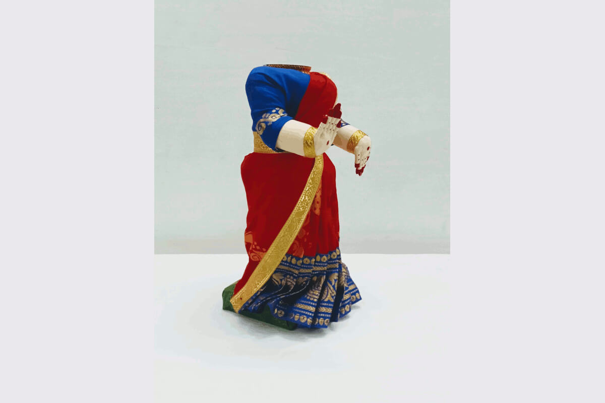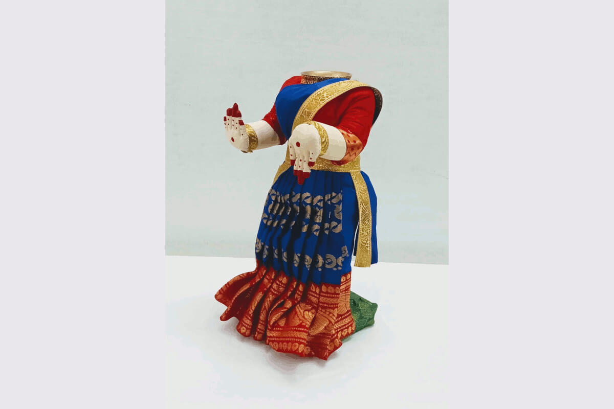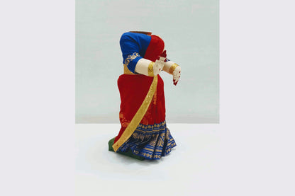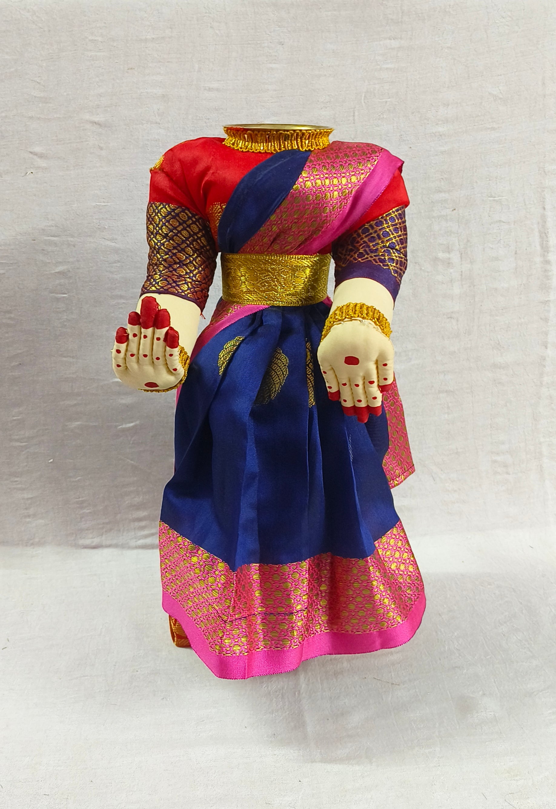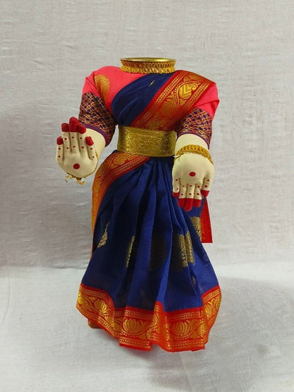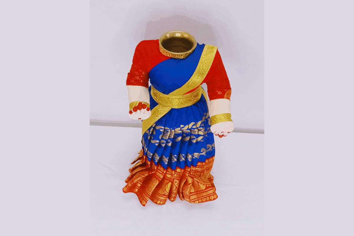Material Stand made of wood with brass/copper kalasam Saree colours and designs will vary